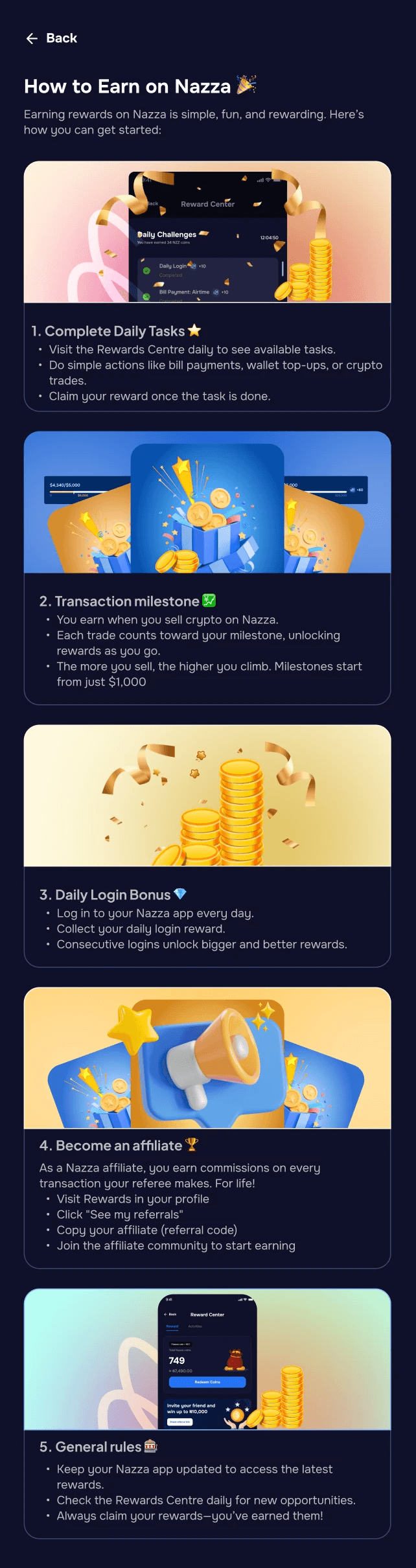 Guidelines on How to earn rewards on Nazza app