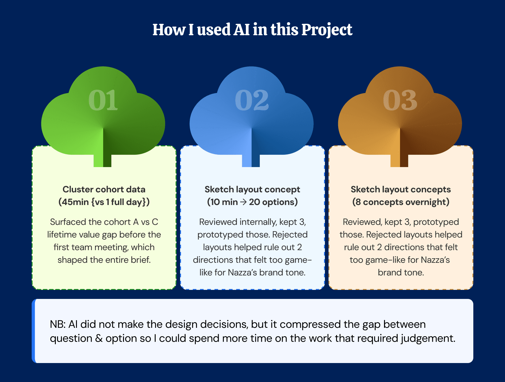 I explored several directions before landing on the final system. Two ideas tested well with users but broke down under compliance and engineering review.