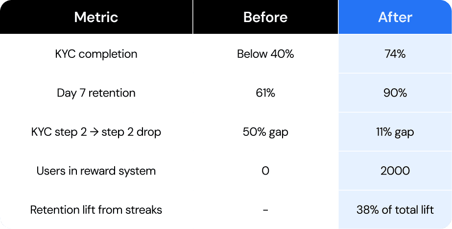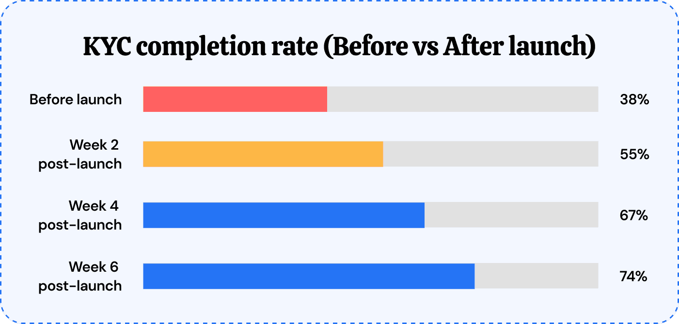 The business needed 2 things to hit its targets: higher KYC completion rates to stay compliant, and stronger return visit frequency to prove engagement depth to investors.